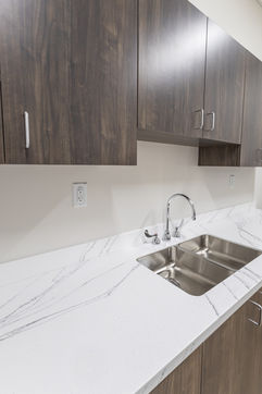 Office build-out featuring custom casework and solid-surface finishes in two breakrooms,